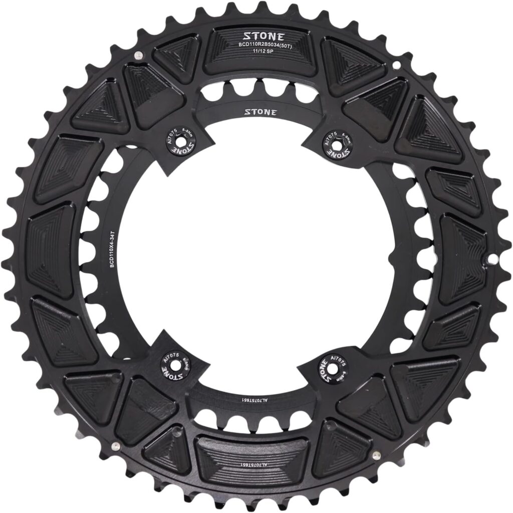 STONEというブランドで46-32T(画像は50₋34Tですが…)という、超コンパクトチェーンリングセットが販売されています!