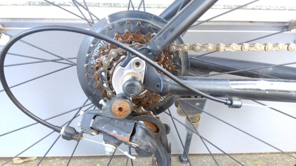 当たり前ですが、リアホイールだけを交換しても「ワイドな8速化」にはなりません。