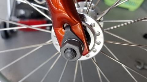 今回は、以前ブログ記事とユーチューブ動画にもさせていただいた、クイックリリース+ディスクブレーキ仕様のクロスバイクの前輪脱落の防止に効果のありそうなアイテムをご紹介したいと思います!