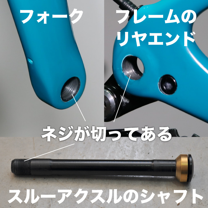 フォーク・リアエンドにハブ軸を入れるスリットがないモノは「スルーアクスル」タイプです!