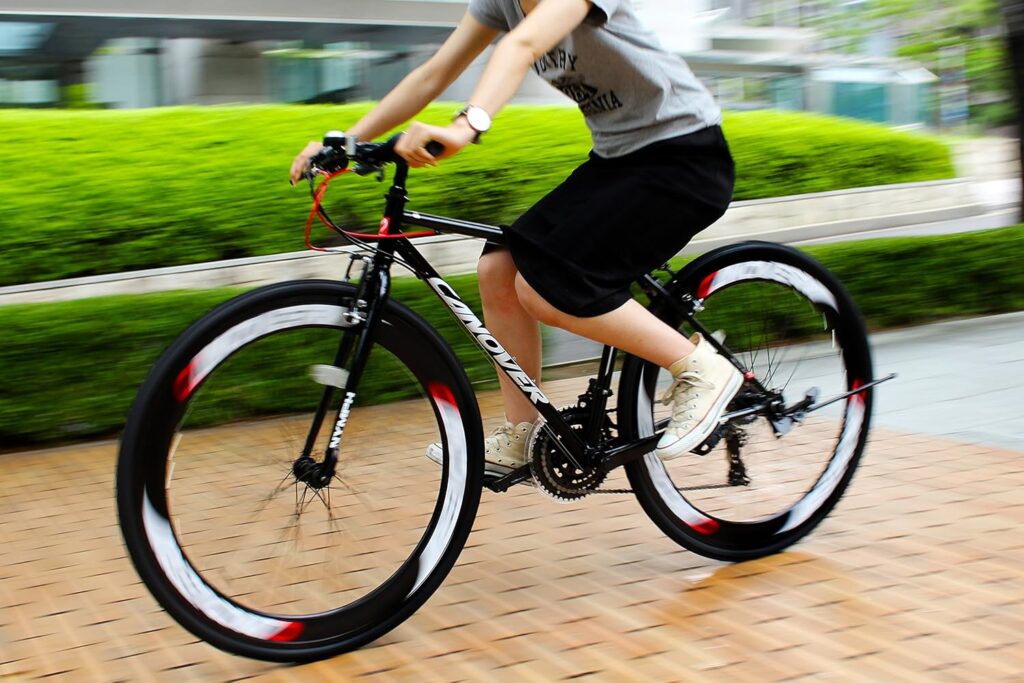 同じような仕様の一般的な高さのリムハイトのホイールが付いたクロスバイクだと、重量は13㎏ちょっとくらいなので、リムハイトを高くしたせいで約1㎏くらい重くなっていそうな感じです!