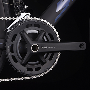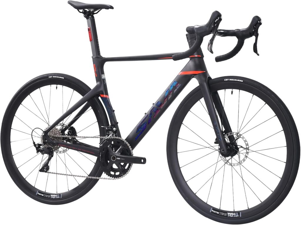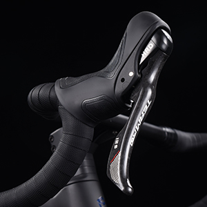 - エアロの追求: フレームの造形は「サメ」をモチーフにした鋭利な形状。シートポスト、ハンドル、フォークが完全にシステムとして統合されており、高速巡航時の空気抵抗を最小限に抑えています。