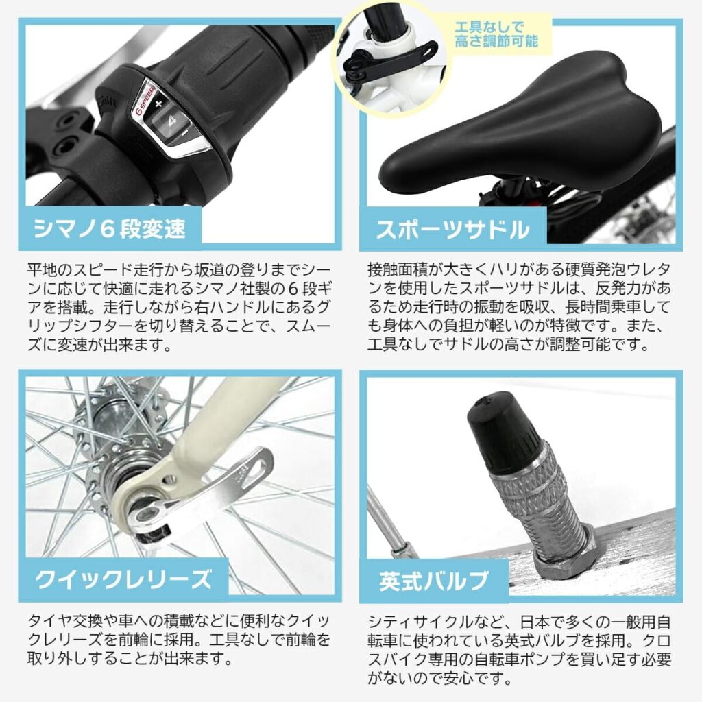 ギアは6段変速のシマノ製レボシフト、前輪はクイックリリース固定になっているので前輪の脱着は工具を使わずに簡単に出来ます。