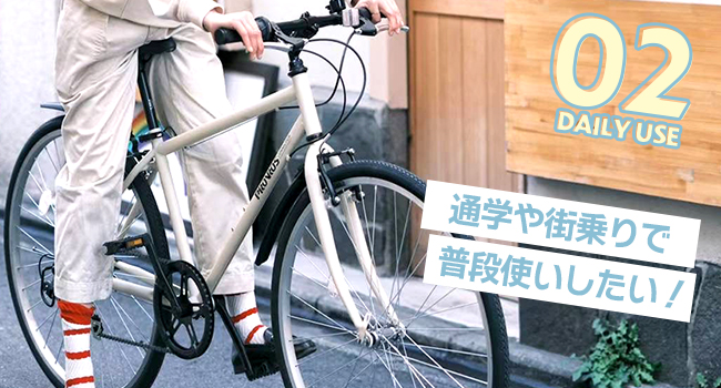 気を付けたいのは↑のような格好だとチェーンとズボンが当たってしまい、裾を汚してしまいます。